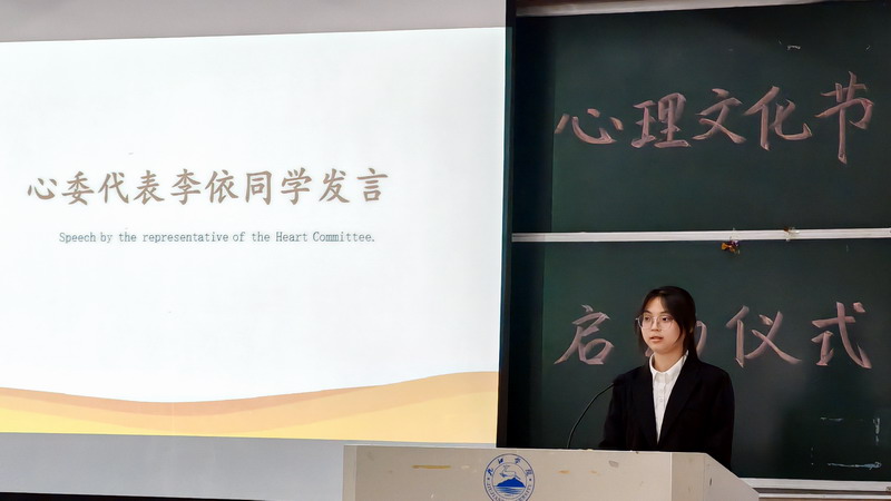 仪式上,谢帆同学以PPT的形式介绍了本届心理健康文化月活动主要内容、具体要求和注意事项。心理委员代表A2351班李依同学做了精彩发言,她指出了当下老员工面临的一些心理问题,并提供了一些方法帮助大家跨越心理障碍,呼吁各位心理委员要不断学习提升,以身作则,成为心理健康的模范榜样。