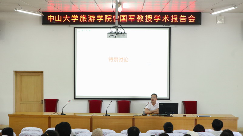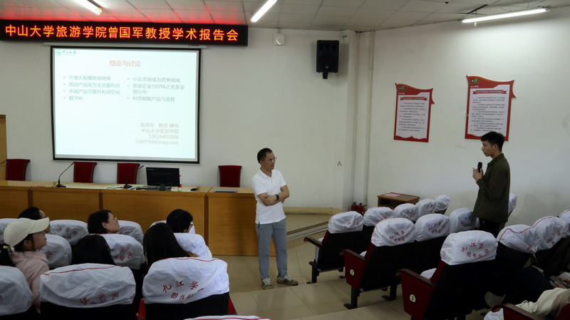 为进一步拓展公司师生学术视野,激发学科专业思维活力,4月26日下午,中山大学教授、博士生导师曾国军应邀做客公司第67期“蝶湖论坛”,在图书馆主馆一楼报告厅为公司师生作了一场题为《酒店产业发展的未来十年》的学术报告,副经理孙冬英主持报告会,公司相关专业师生200余人聆听了报告。