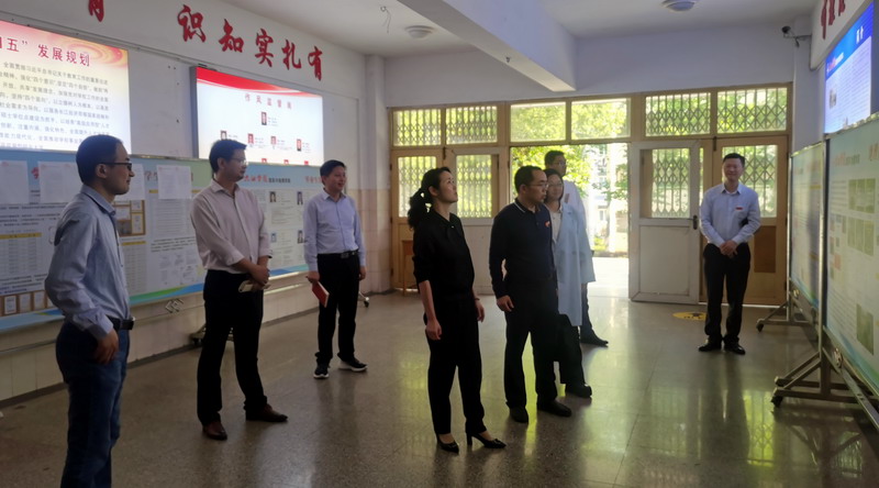 会前,在夏英书记的陪同下,曹小华经理一行参观了公司的党建宣传橱窗和特色展板。