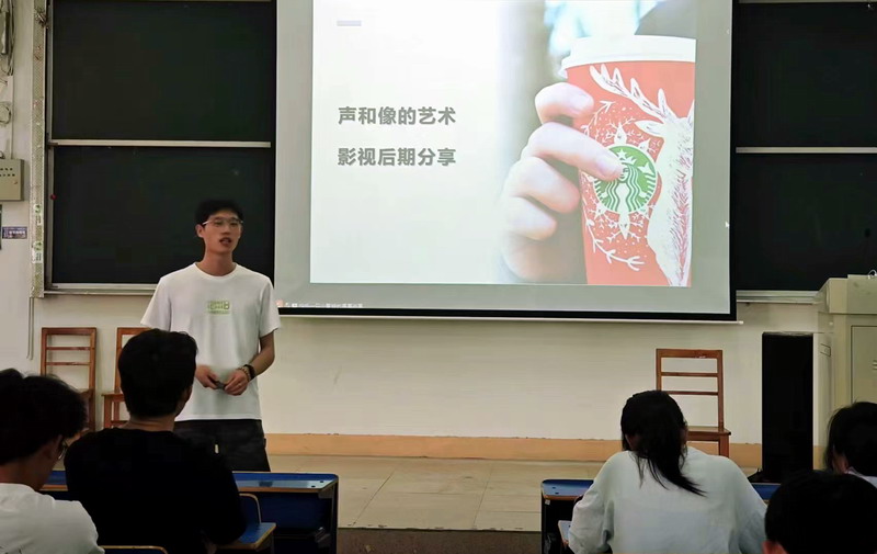 “随着互联网的快速发展,视频剪辑已成为现代日常生活的一个重要组成部分,视频剪辑可以成为我们的必备技能之一。”首先,刘伟斌学长指出了学习视频剪辑的重要性。随后,他以自己的视频作品为例,细致地向我们介绍了他制作视频的思路方法。