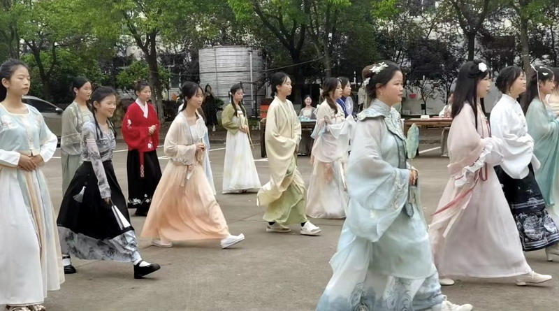 本次樱花诗会共有古风舞蹈、古风歌曲演唱、汉服秀、茶艺表演、朗诵和趣味游戏等六项内容。