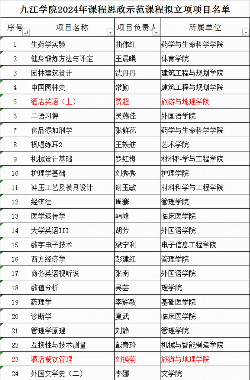 6月24日,公司公布了《关于XC体育2024年课程思政示范课程拟立项项目的公示》,公司贾超老师申报的《酒店英语(上)》和刘换菊老师申报的《酒店餐饮管理》2门课程获批立项。全校共有35门课程立项为2024年校级课程思政示范课程建设项目。