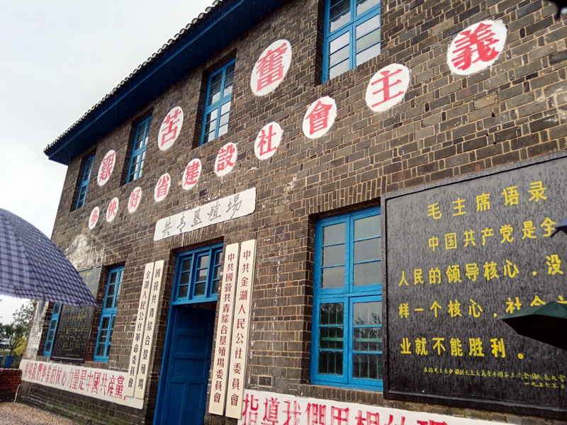 实践队首先来到共青精神体验园,通过走寻探访“解密”共青社一个个小故事。跟随讲解员的脚步,队员们来到灰墙建筑以及印有“扎根农村志不移,广阔天地炼红心”的大门,带着我们穿回垦荒时代。接着,参观了由农仓改造成的可容纳200人的食堂,拥有3口农家大灶的农房,农产品丰富的供销社大楼以及充满历史底蕴的农机厂等,让大家深刻直观地感受到了垦荒运动带来的有效成果。青砖、标语、红旗、手扶拖拉机、老式旧家具、石阶、枕木、木制桁架等等都是垦荒青年们青春的见证,是共青精神发展的痕迹,是故事所在,是圣洁的奉献与拼搏精神的所在。