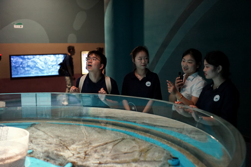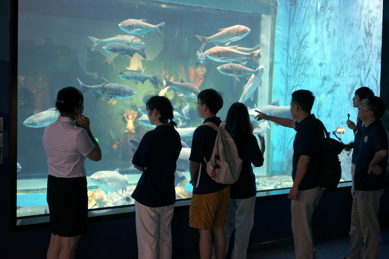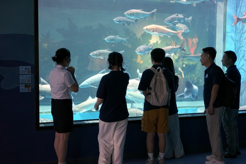 讲解员向大家介绍了长江江豚的生物学特性,从它们的体型特征到生活习性,再到在长江生态系统中的重要地位,同时,她为我们介绍了长江各种淡水鱼种群,每一个细节都讲解得生动而详细。队员们听得津津有味,不时发出惊叹声,对江豚这一珍稀物种有了更加深入的了解。