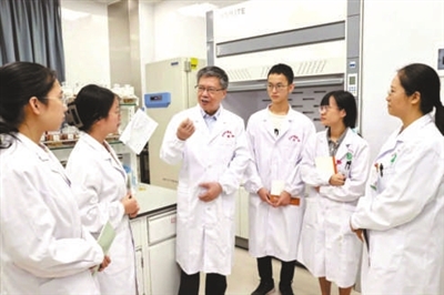 ④ 全国教书育人楷模、江西中医药大学教授刘红宁(左三)在指导员工团队实验。