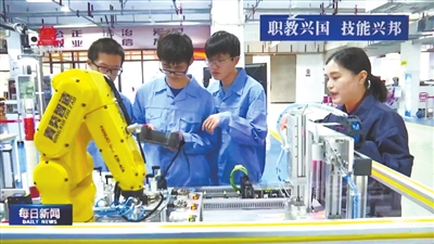 ③ 江西职业教育课程实行“一课双师”,由企业工程师和公司教师组成搭档,向员工们传授知识和技能。