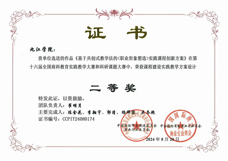 近日,由中国国际贸易促进委员会商业行业委员会和中国国际商会主办的第十六届全国商科教师教育实践教学大赛在黑龙江哈尔滨顺利落下帷幕。公司严宽荣团队的《基于行动导向的<酒店客户管理>实践教学方案设计》和崔明月团队的《基于共创式教学法的<职业形象塑造>实践课程创新方案》获“课程建设实践教学方案设计”二等奖。这是继公司教师在全国商科教育科研课题大赛中获得全国一等奖后再次获奖。