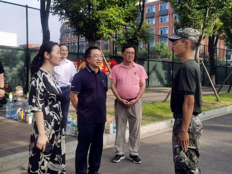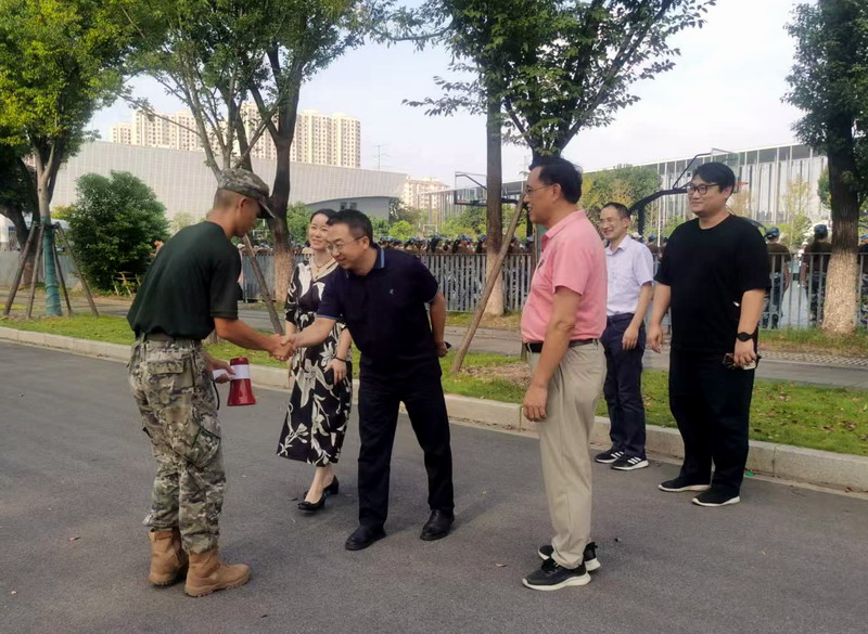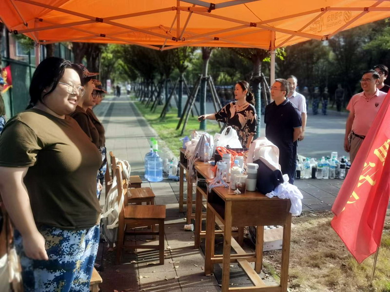 夏英、李华等公司领导在军训现场听取了军训开展工作汇报,观看了员工军训情况,与同学们亲切交流,详细询问同学们在军训期间的身体状况和生活情况,对同学们刻苦训练的精神面貌和勇于挑战的奋斗精神给予赞扬,鼓励同学们继续保持积极向上的精神风貌,不断提升综合素质。对军训教官们辛勤的付出表示感谢,希望教官们科学施训、关注员工健康、用心教育和引导员工,帮助同学们在军训中取得更大进步。希望同学们能够劳逸结合、确保训练安全,锻炼不怕困难、勇往直前的品格和作风,顺利完成军训任务,以饱满的精神状态投入到未来的校园学习生活中。