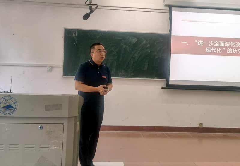 课堂上,公司领导从“进一步全面深化改革、推进中国式现代化的历史背景、战略部署、基本原则、时代意义、