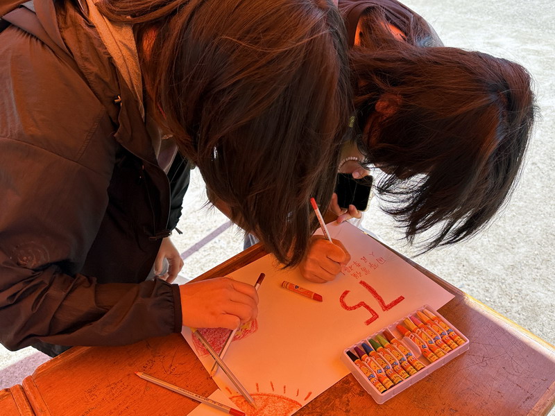 在创作过程中,志愿者们不断鼓励同学们发挥自己的想象力和创造力,用独特的视角和方式表达对祖国的热爱。他们还为同学们提供了丰富的素材和资料,帮助他们更好地完成作品。经过两小时的创作,一幅幅色彩斑斓、充满创意的作品呈现在了大家面前。每一幅作品都饱含着同学们的汗水与心血,都凝聚着志愿者们的智慧与付出,这些作品不仅展现了同学们的创意和想象力,更体现了他们对祖国的热爱和祝福。整个现场洋溢着浓厚的爱国氛围,成为了一道亮丽的风景线。