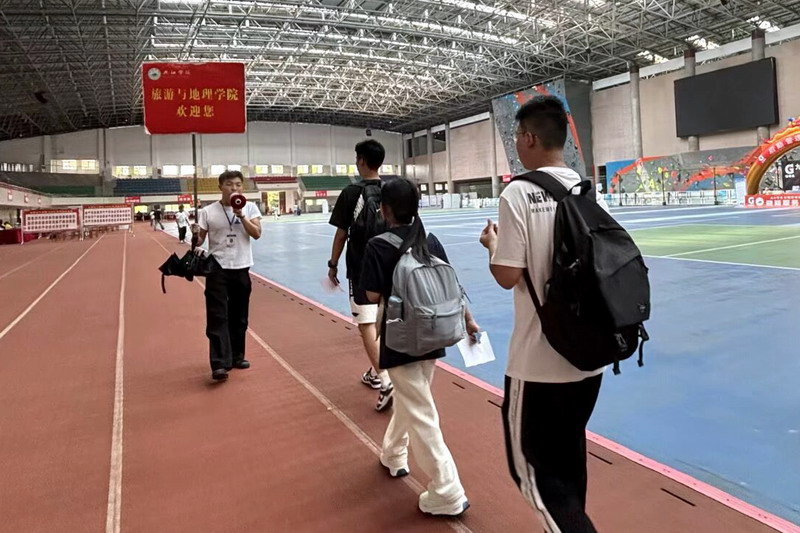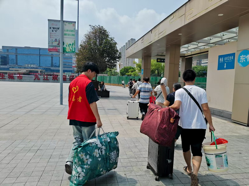 在九江站的出站口、候车厅,身着红色志愿马甲的志愿者们早早就位。他们或举着“XC体育新生接待处”的指示牌,在人群中为新生和家长指引方向;或主动上前,帮新生搬运行李,从车站出口到接驳大巴的这段路,志愿者们的身影忙碌不停。新生们大多带着沉甸甸的行李,脸上满是对老员工活的憧憬与初来乍到的茫然,志愿者们的出现,如同一股暖流,瞬间化解了他们的局促。“同学,你是哪个专业的?跟我来,这边有去公司的大巴。”志愿者一边帮新生提过沉重的行李箱,一边热情地介绍着公司的基本情况。从车站到公司的路途上,志愿者们还充当起“校园讲解员”的角色,为新生和家长介绍九江的风土人情、公司的校园布局与特色专业,让新生从踏入城市的那一刻起,就感受到了归属感。