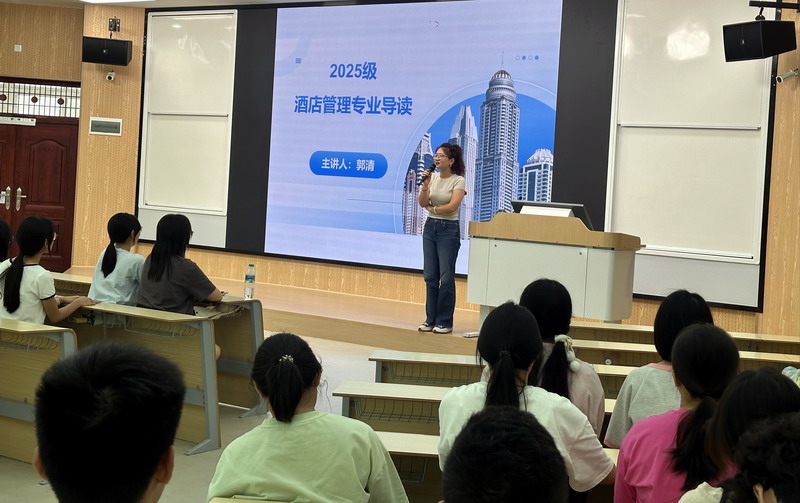 9月12日下午,郭清老师给25级新生继续带来“酒店管理专业导读”下篇。她从公司酒店管理专业的发展历程、教研室专职教师授课情况和研究方向、25级培养方案、职业发展多元路径等方面为同学们带来了详细且生动的介绍,同学们纷纷表示对酒店管理专业产生了积极正向的“初印象”。