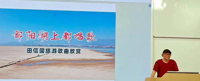 支部委员魏伟新老师在主持时指出,田老师是扎根赣鄱大地的文旅艺术家,是江西旅游的大咖,其作品富有浓郁的江西作品,是江西文旅移动的形象名片,对“江西风景独好”文旅品牌具有重要贡献。我们要学习田老师的才艺,学习田老师的家国情怀,学习田老师的工作激情。办好金牌讲解班是公司的一项重要工作,公司领导高度重视。我们金牌讲解班的目标是培养具有技能、形象、才艺、气质和底蕴,能向世界传播“悠然庐山,诗画九江”的高素质人才。我们迫切需要一批像田老师的文旅大咖来助力金牌讲解班的建设,也需要我们各位同学持续努力加强学习和实践。