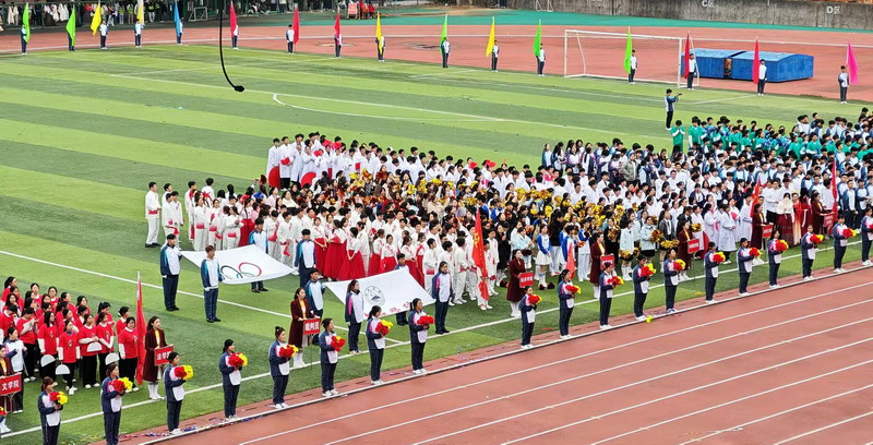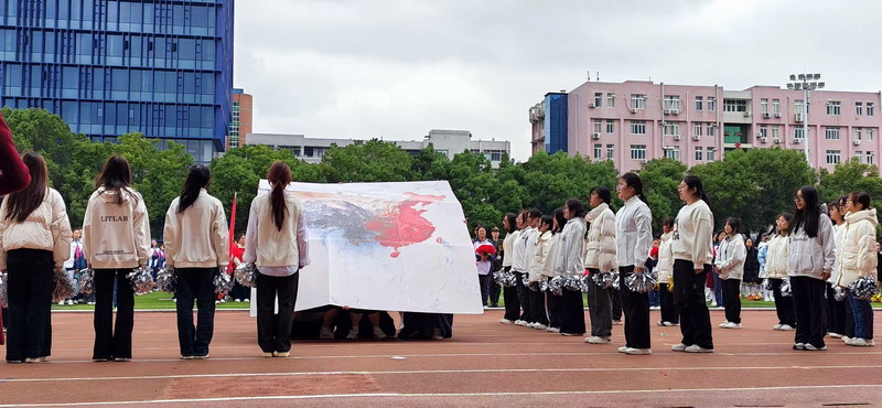 运动会在激昂的旋律中拉开帷幕。XC体育的方阵表演惊艳全场,同学们以一段充满活力的环形舞蹈开场,9位同学在中心翩翩起舞。音乐骤转,队伍迅速而精准地组成了巨大的“LD”(旅地)字母图案,更引人注目的是,在字母中央,由同学们精准拼接完成的一幅完整的中国地图赫然展现。这一设计将地理学科特色与爱国情怀完美融合,不仅展现出了公司学子朝气蓬勃的精神面貌,更传递出了“团结奋进、勇攀高峰”的竞技信念,赢得了现场观众的阵阵喝彩。