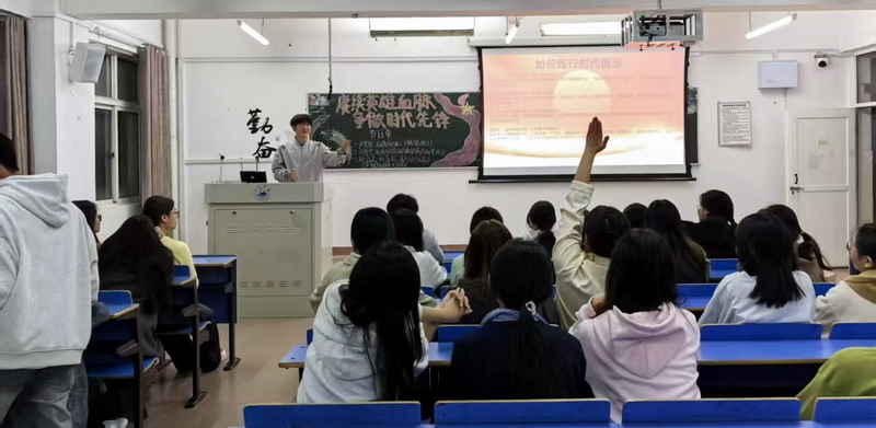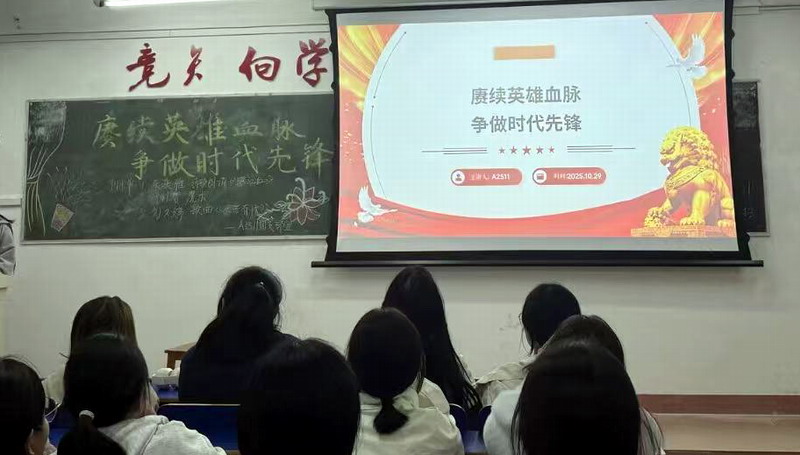 活动围绕“英雄精神”核心展开,各班主讲人首先带领同学们深入解读英雄精神的时代内涵,共同探寻英雄事迹背后的红色密码。从革命时期为家国挺身而出的先烈,到新时代为事业攻坚克难的榜样,一个个鲜活案例在现场分享交流,让“英雄”二字不再是抽象符号,而是可感可知的精神标杆,引导大家自觉传承红色基因,深刻理解英雄精神在当下的价值与意义。在随后的交流感悟环节,同学们结合自身生活实际,分享对英雄精神的理解。现场交流氛围浓厚,爱国情怀在你一言我一语中不断升温,更让大家坚定了以英雄为榜样、勇担时代使命的信念。活动最后,团支书对活动进行总结。