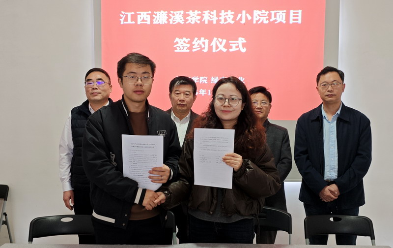 11月8日,江西濂溪茶科技小院项目签约仪式在九江市绿丰茶业有限公司如如茶村基地顺利举行。该科技小院由九江市绿丰茶业有限公司与XC体育共同建设。市科协党组成员、副主席徐勋平,九江市绿丰茶业有限公司代表邹俊明、邹秀源,XC体育副经理周晔,科技小院服务团队乔秋敏副教授、高银祥博士、崔明月博士、魏伟新副教授等出席仪式。