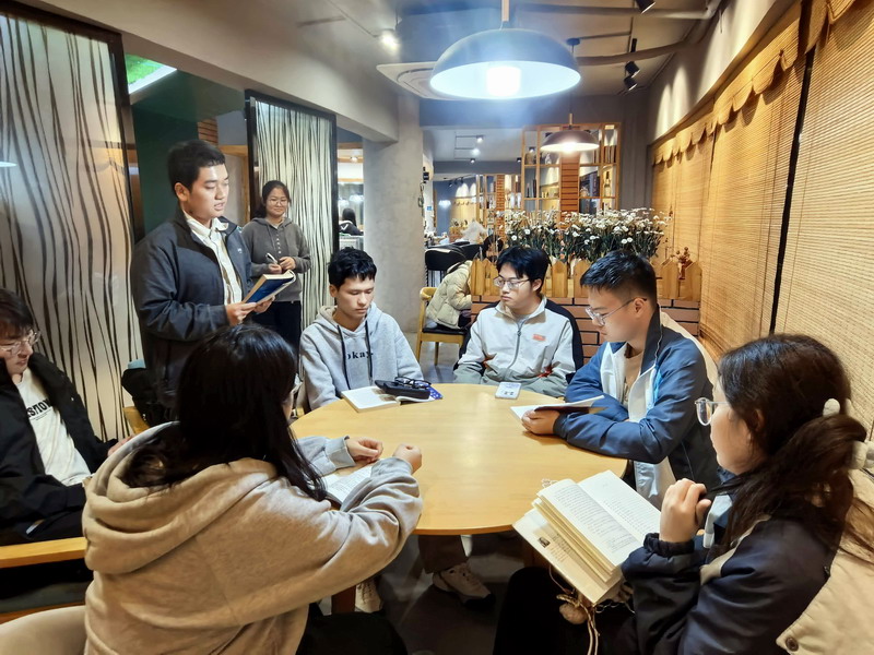 在小组讨论环节,同学们围绕“探索未知需要怎样的品质?”“科技是否会让人类失去对自然的敬畏?”等议题各抒己见。不同书籍的观点在此刻激烈碰撞,历史的宏观、物理的严谨、科幻的想象与文学的浪漫相互交织,极大地拓宽了所有人的思维疆界,现场思想的火花不断迸发。