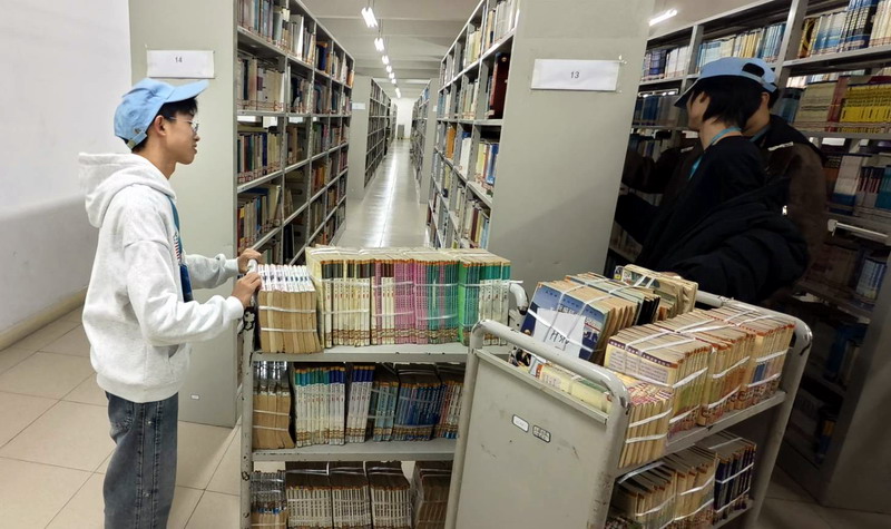 活动现场,志愿者们迅速进入状态:有的小组手持抹布,细致擦拭书架的每一层缝隙,将积尘轻轻抹去,让书籍的封面重新透出清晰的色彩;有的小组合力推动满载图书的推车,按照编号将散落的书籍归类归位,默契的配合让原本繁重的搬运工作变得高效有序;还有的小组蹲在书架旁,逐本整理倾斜的书籍,将错位的编码重新对齐,确保读者能快速找到所需书籍。整个图书馆里,志愿者们的身影穿梭在书架之间,虽没有过多言语,却以认真的姿态传递着服务的温度——从大厅的桌椅擦拭到书库的分类整理,从零散图书的归位到推车的平稳运送,每一个细节都凝聚着大家的耐心与热情,原本略显忙碌的图书馆,在志愿者们的协作下渐渐恢复了整洁与规整。