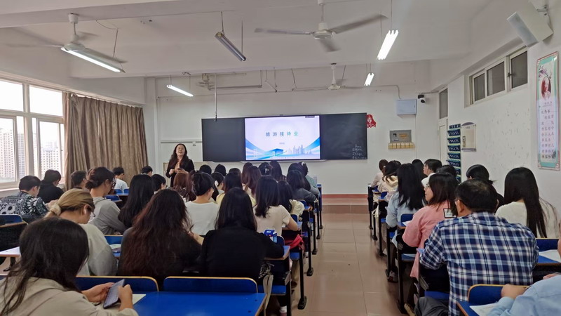 作为旅游管理专业核心课程,《旅游接待业》是践行 “价值引领、知识传授、技能培养” 三位一体教育理念的关键载体。乔秋敏老师以 “新时代文旅融合背景下的接待业创新路径”为切入点,构建了“理论阐释—案例剖析— 实践赋能”的三维教学框架。课堂上,她结合九江庐山民宿集群、高速服务区等案例,系统解读旅游接待业从“传统服务”向“创新体验”的转型逻辑,引导员工认识行业发展与区域振兴的内在关联。在课程思政元素融入环节,乔秋敏老师采用“滴灌式”渗透策略,将思政教育与专业内容精准衔接。