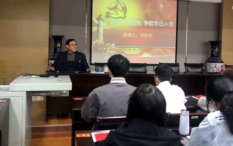 开班仪式结束后,吴彭年为积极分子讲授第一讲党课,他以《端正入党动机,争取早日入党》为题进行讲授,分别从老员工入党的首先条件是什么、什么是正确的入党动机、如何树立正确的入党动机、如何成为合格的老员工党员四个方面为同学们进行了详细的讲解。