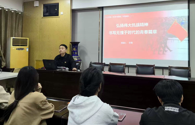 讲座中,李海从中国人民抗战历程,中国共产党的中流砥柱作用,中国人民抗战胜利的历史意义,抗战精神的历史启示和时代价值四个方面展开授课。他系统回顾了中国人民抗日战争的壮阔历程,引导学员们认识到,国际竞争的实质从未改变,核心利益与国家实力是国际关系的基石。指出作为生长在和平年代的青年一代,尤其是作为入党积极分子,必须深刻理解和自觉传承这一宝贵精神财富。要将爱国情怀融入血脉,将民族气节付诸行动,将英雄气概用于攻克学习与生活中的难关,将必胜信念锚定民族复兴的宏伟目标。