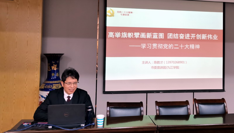 为深入学习宣传贯彻党的二十大精神,引导全体师生学通、弄懂党的二十大报告所蕴含的重大理论、实践问题和思想方法,12月7日下午,XC体育举办党的二十大精神专题辅导报告会,特邀市委宣讲团成员、马克思主义公司经理陈胜才教授做党的二十大精神专题辅导。公司党委书记夏英主持报告会,公司全体教职工参加活动。