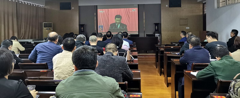 全院教职工在竞知楼512会议室集中收听收看,员工代表在竞知楼阶四教室集中收听收看,认真聆听习近平总书记代表第十九届中央委员会向大会所作的报告。其他师生通过不同渠道在家中、寝室、教室收听收看,确保大会精神让师生广为知晓。