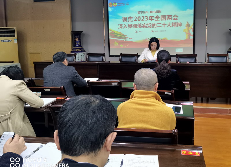 3月15日下午,XC体育在竞知楼512会议室召开全院教职工政治理论集中学习会,传达学习十四届全国人大一次会议和全国政协十四届一次会议精神。重点传达了两会期间习近平总书记重要讲话精神,政府工作报告的主要内容。党委书记夏英主持会议,全体教职工参加了会议。