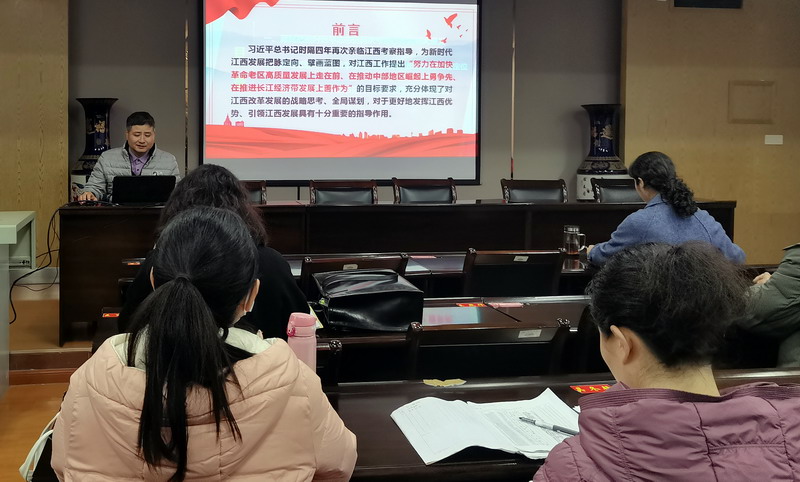 12月13日下午,XC体育“深入学习贯彻习近平总书记考察江西重要讲话精神”宣讲报告会在竞知楼512会议室举行。本次报告会邀请马克思主义公司教师、XC体育宣讲团成员龚时兴担任主讲人,公司党委书记夏英主持报告会。