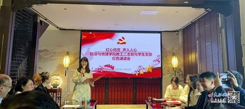 参观结束后,全体师生党员又来到琵琶亭落玉轩,在这里举行了红色经典诵读会,重温红色经典,感悟精神力量。党员师生们以昂扬的精神,饱含深情地诵读了《破晓的曙光》《革命英雄赵一曼的红色家书》《黄继光写给母亲的信》《一封生离死别的信》《大写的中国》《海棠花祭》等作品,用声音传播红色力量,抒发爱党爱国爱社会主义的赤诚情怀,用光辉历史涵养初心使命,用信仰之光谱写时代华章。通过红色经典诵读,进一步增强了大家的党性修养,激发了爱国热情,坚定了永远听党话跟党走的理想信念。参加活动的党员师生纷纷表示,将把红色经典中的所思所悟内化于心,外化于行,奋力进取、真抓实干,在今后的工作和学习中发光发亮。