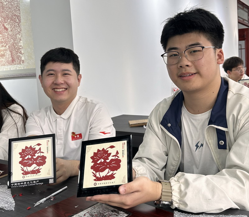 微党课结束后,大家动手实践,切身体会如何创作剪纸。在非遗传承人的悉心指导下,大家很快创作出属于自己的剪纸作品。大家欣赏着自己精心剪出的作品,脸上洋溢着幸福的微笑,纷纷合影留念。同学们不仅掌握了瑞昌剪纸的基本操作流程,也让大家对这一国家级非遗项目有了更深入的了解。有的同学感慨瑞昌剪纸技艺精湛;有的同学说要学习非遗传承人的专注细致,用来指导学习生活;有的同学则跃跃欲试,想为弘扬非遗贡献出自己的一份力量......