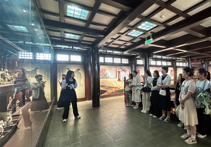 随后,同学们以小组为单位参观了江西省级非物质文化遗产“浔阳八景”中的琵琶亭、锁江楼、浔阳楼、烟水亭、思贤桥及能仁寺,每到一处,各个小组的同学都会化身为讲解员,为师生详细讲解该景点的历史传说和发展现状,讲解的同学得到了锻炼,倾听的师生们也纷纷表示亲身实践更能感受非遗的魅力。