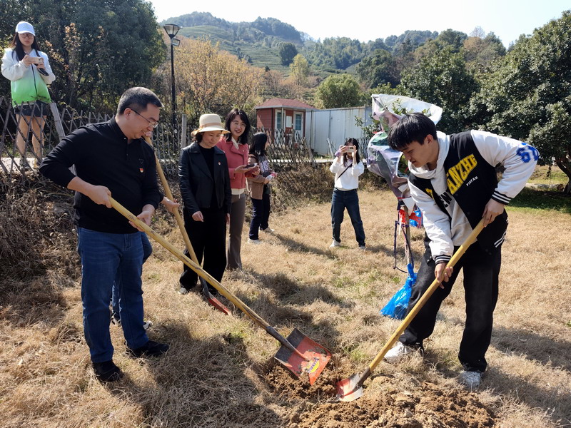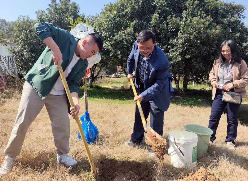 春风和煦,绿意盎然。在如如茶村古茶园,校地双方共同植下两株象征深厚情谊的柠檬树。党员干部挥锹培土、浇水养护,在协作劳动中深化共建情谊。