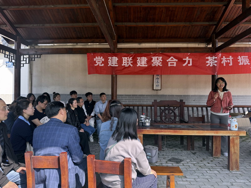 在古色茶亭内,崔明月同志带来了一场深刻的“党建引领聚合力 产教融合谱新篇”主题党课。“如何给农业加分”是这次活动中探讨的主题。今年两会政府工作报告中李强总理指出:“未来的农业方向就是要做农业延链”,延长产业链也就意味着增加价值链。崔明月同志根据此次党建活动中的见闻,阐释“延伸产业链、提升价值链、完善利益链”的实践逻辑。她指出:“农业延链要答好‘特色+科技+融合’三张考卷,党组织需在技术攻关、品牌培育、渠道拓展等环节发挥枢纽作用。”