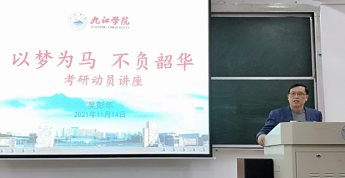 吴彭年从“为什么选择考研”、“考研我们要做什么”、“考研的关键是什么”及“考研的个人体会”四个方面进行了全面深入的分析,他的讲解内容丰富新颖,语言诙谐幽默,生动有趣,非常启迪思维和具有鼓舞性,让同学们受益匪浅,考研的积极性得到提高。