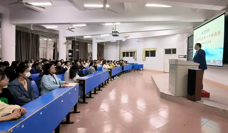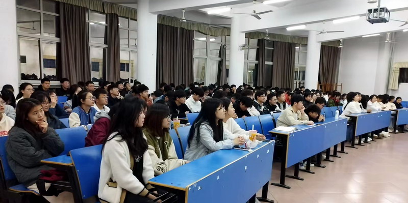 吴彭年首先从中华民族伟大复兴的层面向同学们阐述了考研的必要性,指出考研不仅是国家对复合型高层次创新人才的需要,也是公司的要求,也是提升自己的学历层次和综合素质的需要。接着,他分别从收集考研信息、选择公司和专业、考研流程、考研的关键和技巧等方面向同学们详细介绍了考研的相关知识。并从大数据角度分析了历年来公司员工录取人数较多的院校和专业,介绍了一些同学考研的成功案例。吴彭年强调,目前考研形势严峻,同学们要结合个人实际情况,尽早确定是否考研的目标,如果选择考研,现在就要制定学习计划,大一先从抓英语开始,并提前收集和了解相关考研信息。