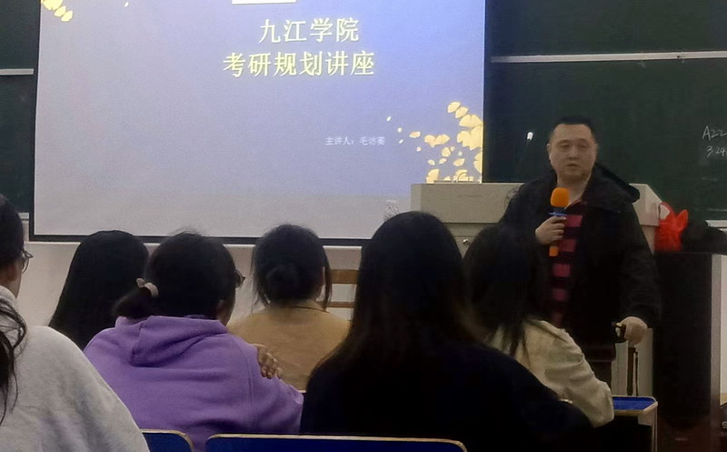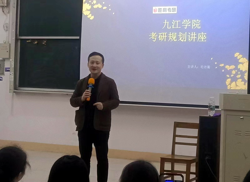 接着,毛老师结合自己当导师的经验,就分数偏低的员工如何调剂、在复试过程中如何联系导师、如何准备笔试、面试及详细介绍了面试过程中需要注意的问题提出了很好的建议。讲座持续一个半小时,毛老师的演讲贴近现实,语言幽默,内容丰富,在场同学们全神贯注,受益颇多。