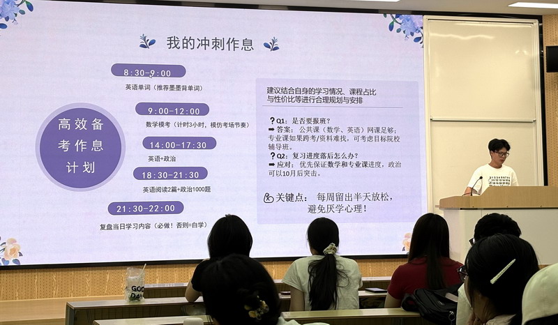 此次考研经验交流分享会内容丰富、干货满满,通过经验传递与策略指导,为逐梦考研的学子点亮前行灯塔,使他们对考研有了更全面、更深入的了解。相信在学长学姐们的经验指引下,2026届考研学子能够明确方向,砥砺前行,在未来的考研道路上取得优异成绩,实现自己的青春梦想。