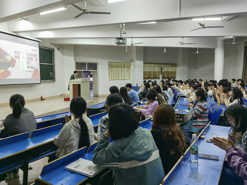 会上,曹铭老师介绍了2023年度国家奖学金获得者丁欣华和唐怡平两位同学的先进事迹,并作了总结讲话,他希望同学们以优秀学子为榜样,找准定位,确立目标,脚踏实地,踔厉奋发,让青春由磨砺而出彩,人生因奋斗而升华。在分享会的最后,现场同学积极提问,就如何做到自律、专业课学习、学科竞赛等问题现场互动,两位分享者也对同学们提出的问题进行解答并送上期许。