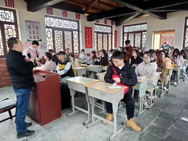 在专家讲座环节,修水县古城建专家组组长、修水县党的二十大精神宣讲团核心成员龚九森教授为同学们做了一场题为“修水汤桥村历史文化解读”的学术讲座,详细地解读了修水县、汤桥村的历史文化、风俗习惯、历史名人,为师生们深入了解汤桥传统村落打开了一扇窗。