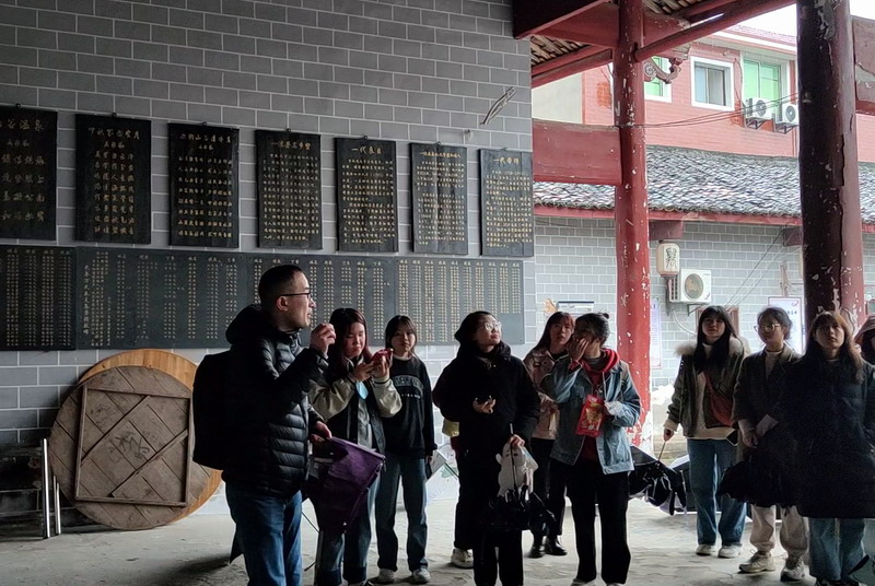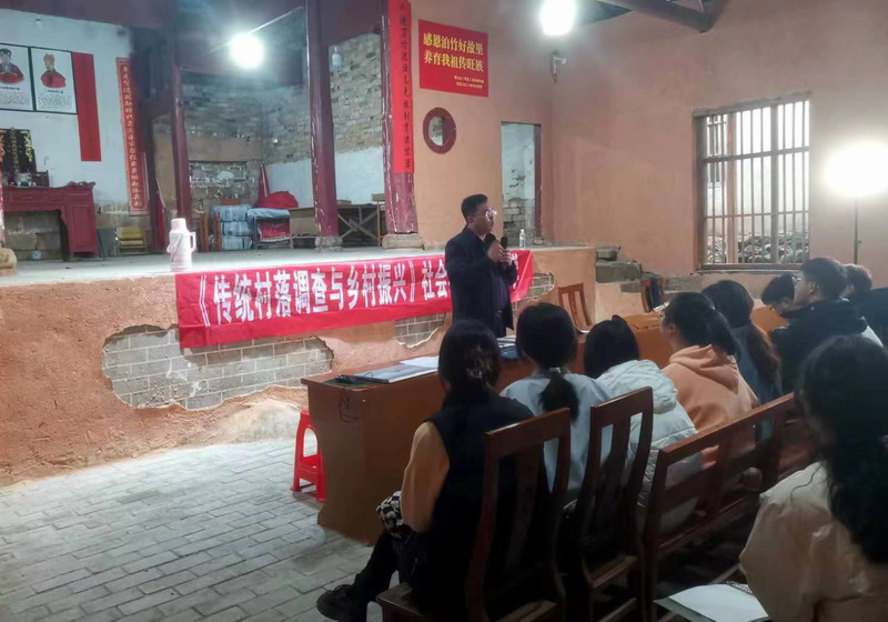 在现场考察环节,村干部和当地文化专家为师生们作了讲解,同学们参观村落的祠堂、书院、民居、水井、街巷、古树等的遗存遗物,全面搜集整理村落的自然与文化资源,了解村落文化建设与宣传的现状,并通过入户访谈的形式了解村落发展的痛点与难点。