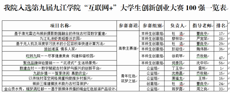 6月2日,公司发布了《第九届XC体育“互联网+”大赛100强评审结果公示》,全校共有100个项目进入第二轮复评环节,其中公司占有11席。