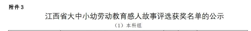 近日,江西省教育厅发布了《关于公布江西省大中小幼劳动教育宣传展示作品获奖名单的通知》(赣教体艺办函〔2024〕3号)。公司刘换菊教师报送的“劳动教育典型案例”《创新“5+1”劳动育人模式,提升员工劳动素养》荣获二等奖。全校共有8项作品获奖,其中一等奖1项,二等奖3项,三等奖4项。
