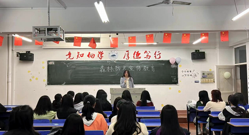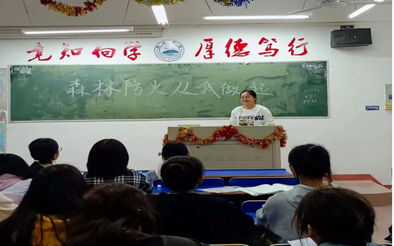 活动中,各班主讲人通过看视频、看图片、举实例、看文字资料、知识问答等各种形式,向同学们介绍了什么是森林火灾、引起森林火灾的各种原因,讲解了森林火灾的危害与严重后果,并指出森林防火工作是关系森林资源安全、群众切实利益和社会稳定的重要工作。特别强调了野外用火更容易引起森林火灾,如野外炊烟、做饭、烧纸、取暖、燃烧干草、燃放爆竹礼花等,其中以开垦烧荒、吸烟等引起的森林火灾最多。希望各位同学能够明白森林火灾的严重危害,在日常生活中树立安全防范意识,让森林防火意识入脑、入心、入行。