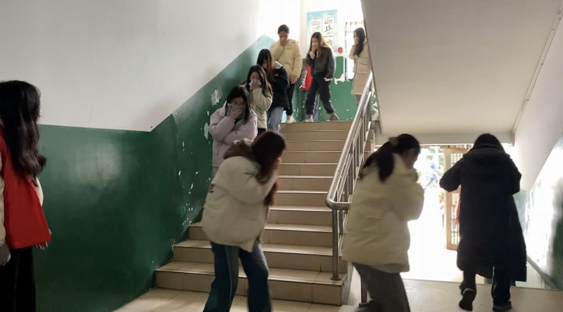 下午14:30分,火灾警报突然响起,消防疏散演练正式开始。18栋2楼全体同学及全体员工会干部100余人分四组开始消防逃生疏散演练。同学们由寝室长带领,按照“一捂口鼻,二弯腰,三贴墙走”的原则,有序、快速从18栋二楼楼梯迅速撤离到三食堂广场安全区域,整个演练过程组织有序,撤离迅速,紧张但不慌乱。在抵达操场指定的安全区域后,各组自觉进行人数清点,并向老师报告,演练活动取得预期效果。