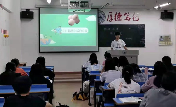 活动中,主讲人首先介绍了什么是低碳生活,带领大家认真学习了党的十八大以来习近平总书记关于生态文明建设论述中关于“绿色低碳”的重要讲话精神,让同学们了解低碳生活的重要意义。