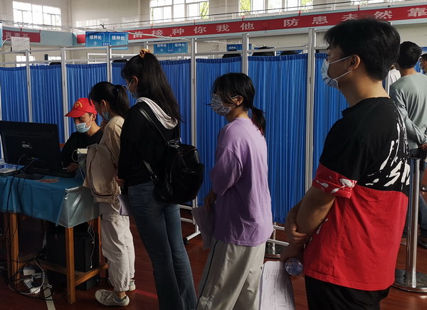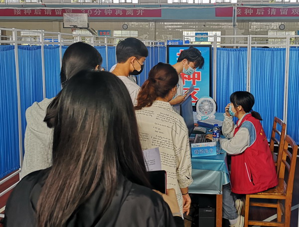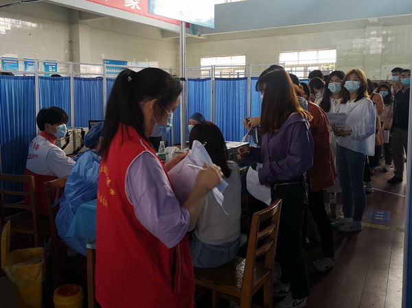 根据公司疫苗接种工作安排,XC体育48名平安江西志愿者于5月21日7点40分在南区体育训练馆集合完毕,在接种点负责人员的安排下,志愿者们分成几组分别负责场外同学排队并发放并指导填写知情同意书、场内等候接种师生排队引导、接种台疫苗接种师生的登记建档、留观区的维持秩序和应急等服务工作。志愿者们眼观六路、耳听八方,在任何需要帮助的时刻随时出现,耐心解答疑问、一丝不苟地核对接种数据,极大的缓解了接种点医务人员的工作压力。