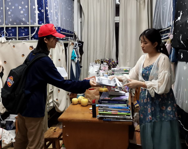 当晚8时,XC体育20余名平安江西志愿者于18栋宿舍一楼集合,在志愿者服务部的组织下领取了本次活动的宣传资料,分别进入女18栋宿舍和男33栋宿舍,开展本次活动。