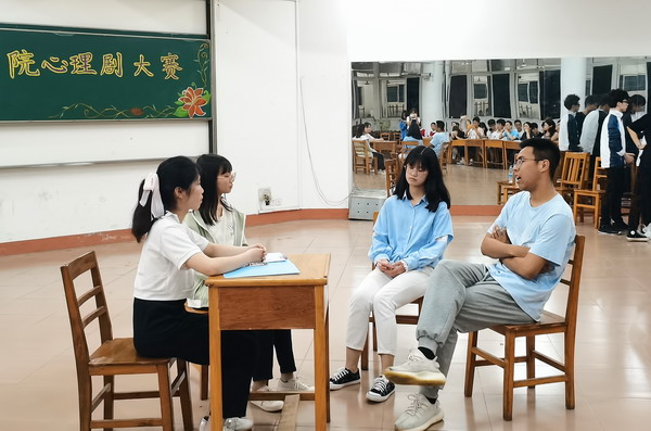 室友间的沟通难题,母女间的对抗争执,小情侣间的爱恨情仇……这些日常生活中经常看到的画面,被搬上心理剧的舞台,是怎样的一种体验?5月11日晚,XC体育第十三届心理剧大赛决赛在竞知楼阶八教室拉开帷幕,选手们围绕“不负韶华 出彩青春”主题,以心理剧的表现方式,进一步地认识了自我、释放了自我。员工科长张建星、副科长龚双双及员工会部分员工代表参加了活动。