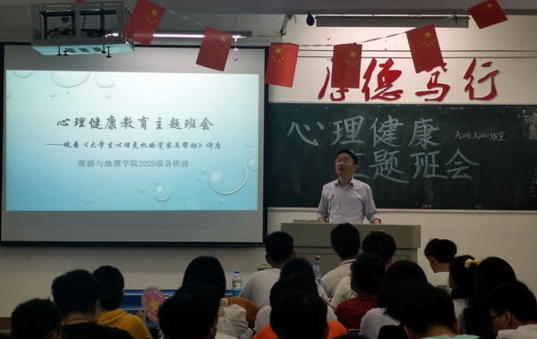 5月25日是全国老员工心理健康日,根据公司“不负韶华,出彩青春”心理文化节相关安排,为加强员工心理健康知识的宣传与普及,促进同学们自觉维护自身心理健康,同时增强班级凝聚力,构建和谐校园,5月9日晚,旅游与地理学2020级同学在竞知楼四楼各班晚自习教室举行心理健康教育主题班会。